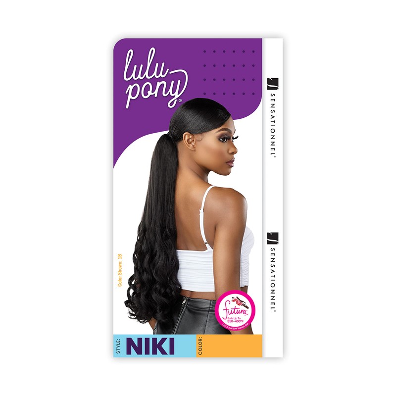 Sensationnel Lulu Pony Drawstring Ponytail - Long Ponytail Hair Extension - Lulu Pony NIKI (1B Off Black)
