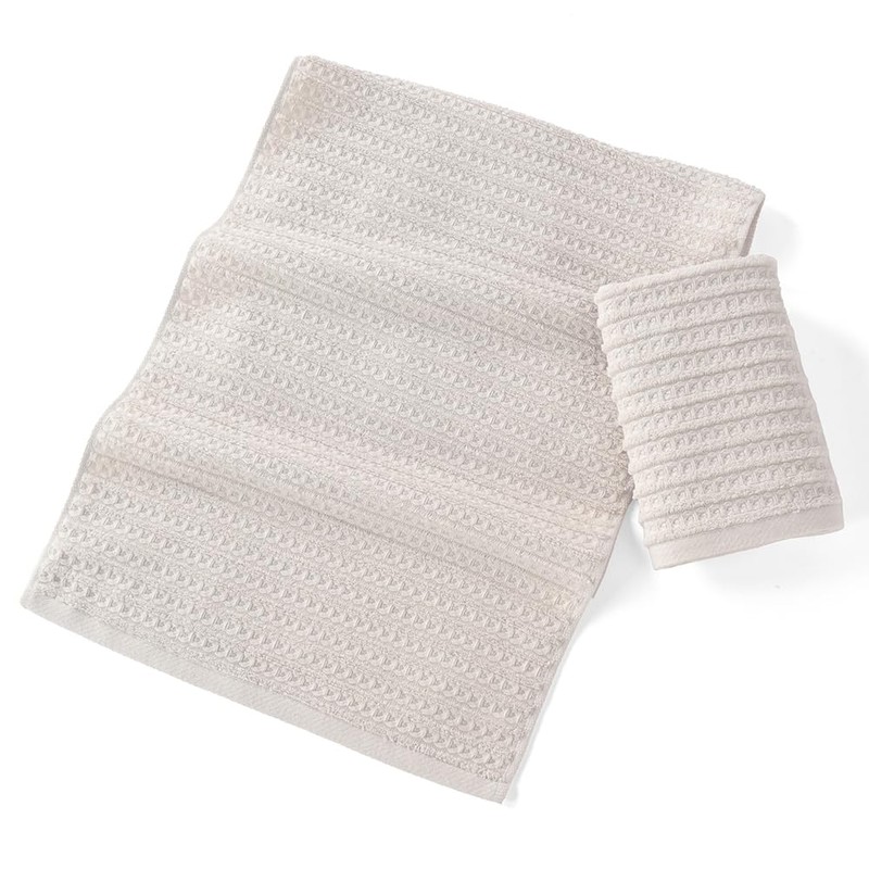 - Our towel set Includes 2 high quality waffle weave with terry striped pattern design hand towels, Each hand towel measures 13" x 29"