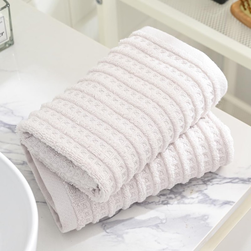 - Waffle weave with terry striped pattern design, towels are super lightweight, easy to carry, Multifunction great for daily use, kitchen bathroom, spa, hotel and also perfect for traveling and sport