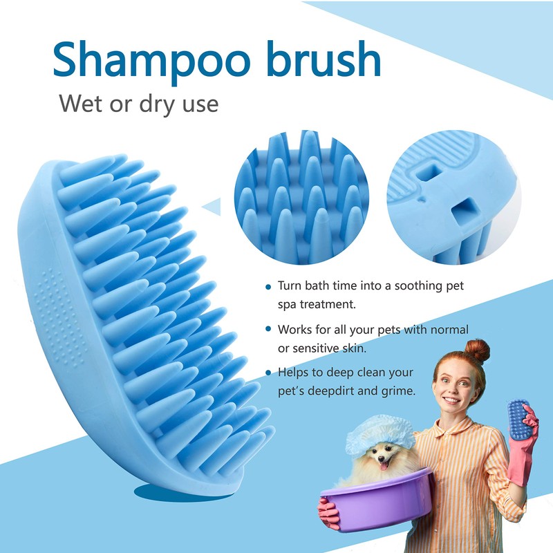 - GIVE YOUR PET A MASSAGE-Your pet will feel like they went for a spa treatment being primped with this dog/cat shampoo bath brush. Use this silicone dog brush for shedding during a bath for comfort and proper coat health. You can achieve the DUAL-PURPOSE of massaging your pet while promoting circulation and improving skin and coat condition.