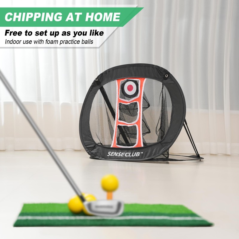 - POP UP CHIPPING NET:⛳️ Features 3 dynamic pockets with target for golfers of all abilities. Practice your shots and enjoy fun golf games just in one set.