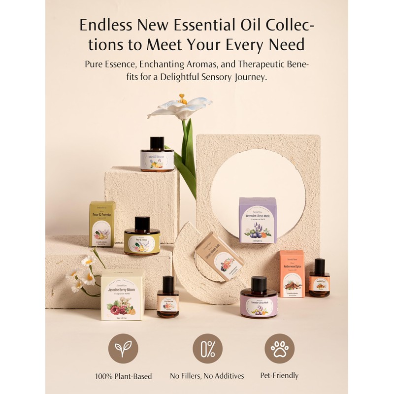 • Signature Essential Oil Collections for Every Occasion: Explore an endless array of fragrances, from the PureEssence botanical series to the AromaBliss home scents and therapeutic Aromatherapy blends. Each collection offers 100% pure essential oils crafted to enhance your atmosphere and wellness. Refills sold separately to tailor every sensory experience.