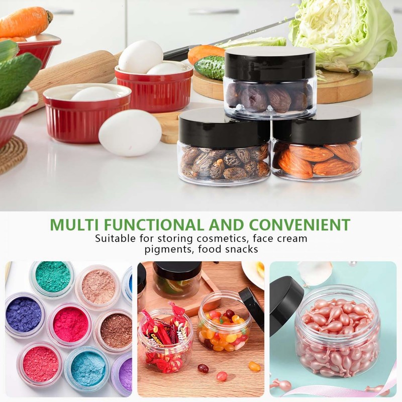 • Package Includes: After purchase, you will get 5 pcs plastic jars with black lids. You can use them as a travel cream container by yourself, and you can also share them with family and friends as holiday gifts