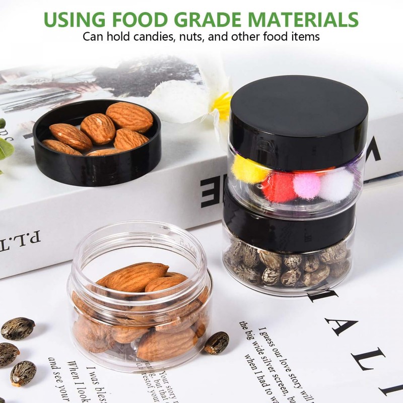 • Wide Uses: You can use the plastic jars with lids to store various items, such as home-made cosmetics, body lotion, moisturizing cream, etc., as well as various small items, such as earrings, rings, thumbtacks, and can also be used as handicrafts