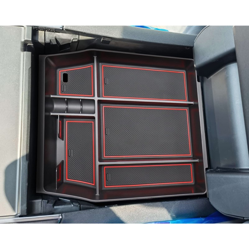 SENSHINE Center Console Organizer Tray for Ford F150 2021 2022 2023 2024 2025 Accessories Car Interior Secondary Storage Armrest Box Insert Hidden Cubby Drawer (Red Trim)