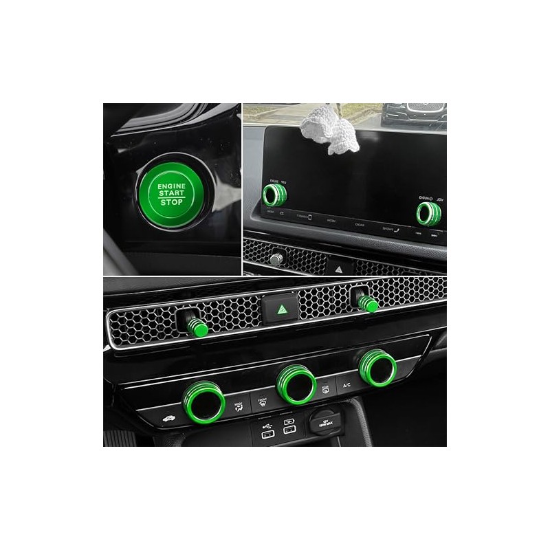SENSHINE SENSHINE Air Conditioning Control, Vent Knob Cover for Honda Civic Accessories 2022 2023 2024 2025 CRV 2023 2024 2025 Acura Integra 2023 2024 2025 Start Push Button Cover Trim Ring 11Pcs (Green)