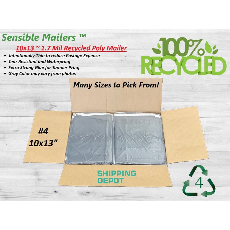 Sensible Mailers – 500 Pack of 10x13” Fully Recycled Poly Mailers Grey – Shipping Envelopes for Small Business