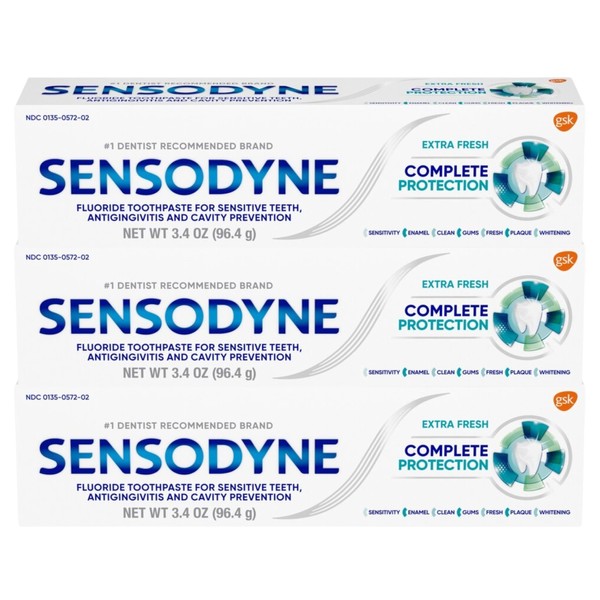 Sensodyne Complete Protection Sensitive Toothpaste Sensitive Teeth Treatment, Extra Fresh - 3.4 Ounces (Pack of 3)