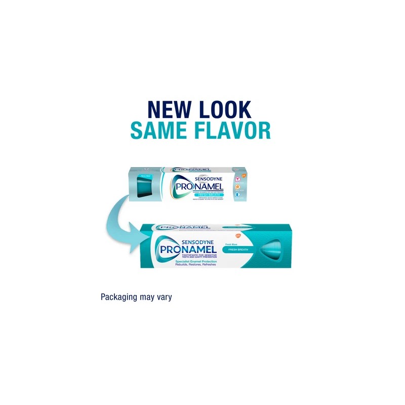 • Two 4 oz tubes of Sensodyne Pronamel Fresh Breath Enamel Toothpaste for Sensitive Teeth - Packaging May Vary.