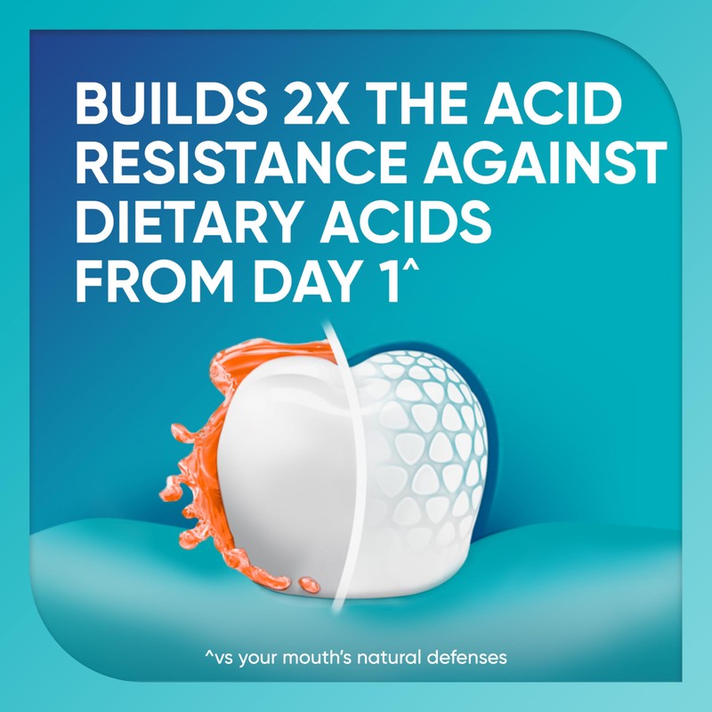 • This toothpaste with fluoride builds 2x the acid resistance from day one against dietary acids versus your mouth’s natural defenses to help keep teeth strong and healthy with a fresh breath feeling