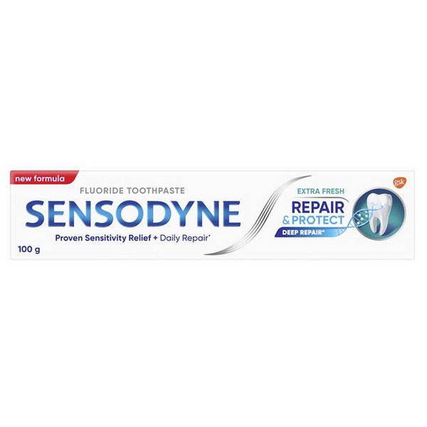 Sensodyne Repair & Protect Extra Fresh, powered by NOVAMIN, is a calcium sodium phosphosilicate formulation. With twice daily brushing, it helps repair* sensitive areas with the natural building blocks of teeth. It helps to protect~ from the pain of sensitive teeth, to help you enjoy life.