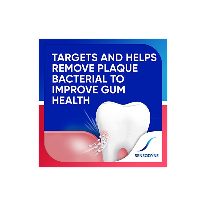 Sensodyne Sensitivity & Gum Sensitive Toothpaste for Gingivitis offers two benefits in one effective sensitive teeth treatment, relieving sensitivity pain and improving gum health at the same time. This stannous fluoride toothpaste creates a protective layer over exposed dentin, preventing pain triggers from reaching the nerves inside the tooth. With antimicrobial properties, this anticavity toothpaste for sensitive teeth and gums also removes plaque bacteria associated with gingivitis to help reduce swollen, bleeding gums. Sensodyne Sensitivity & Gum toothpaste has a low abrasion anticavity formula to protect your teeth against tooth decay. If you suffer from tooth sensitivity and also deal with gum problems, take control of both these conditions with this Clean and Fresh toothpaste, which leaves you with fresh breath. Brush with this . oz toothpaste for two minutes, twice daily. Get protection from tooth sensitivity with Sensodyne.