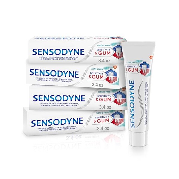 - Four .-ounce tubes of Sensodyne Sensitivity & Gum Sensitive Toothpaste for Gingivitis, Sensitive Teeth Treatment, Clean & Fresh