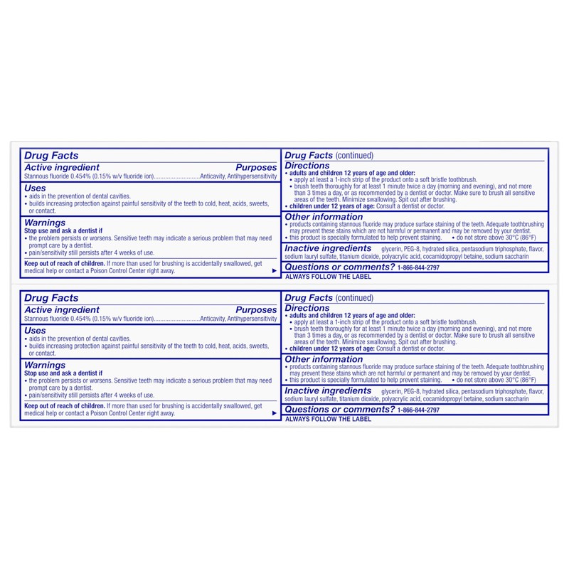 Sensodyne Complete Protection Sensitive Toothpaste For Gingivitis is a sensitive teeth treatment specially formulated to provide all around daily toothpaste needs in one complete toothpaste with stannous fluoride. This gum health toothpaste also delivers anticavity protection as it protects you from pain triggers. With twice daily brushing, this sensitive teeth whitening toothpaste rebuilds and rehardens enamel, fights gingivitis and helps you restore the natural whiteness of stained teeth. At 3.4 ounces, this Extra Fresh toothpaste 2 pack includes tubes in convenient travel sizes within TSA requirements, making it easy to take with you. For best results, brush for two minutes, twice daily. Get lasting protection from tooth sensitivity with Sensodyne.