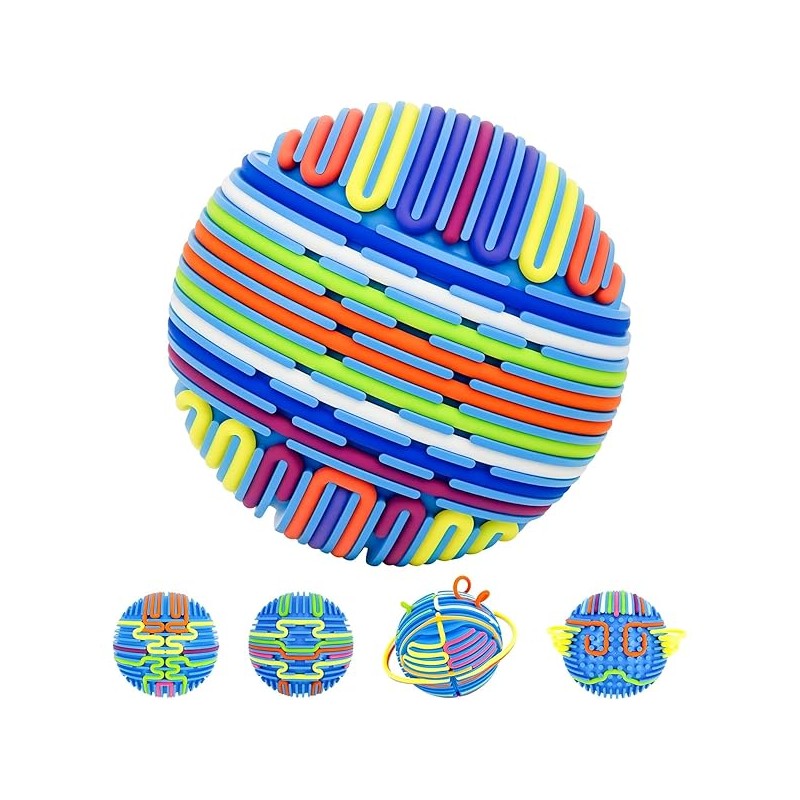 Sensory Activity Ball,Sensory Activity Board 3D DIY Upgrade,Fidget Toy for Calming, Stress, Anxiety, ADHD & Autism,Kids 3+ & Adults,with 16 Strings(Blue)