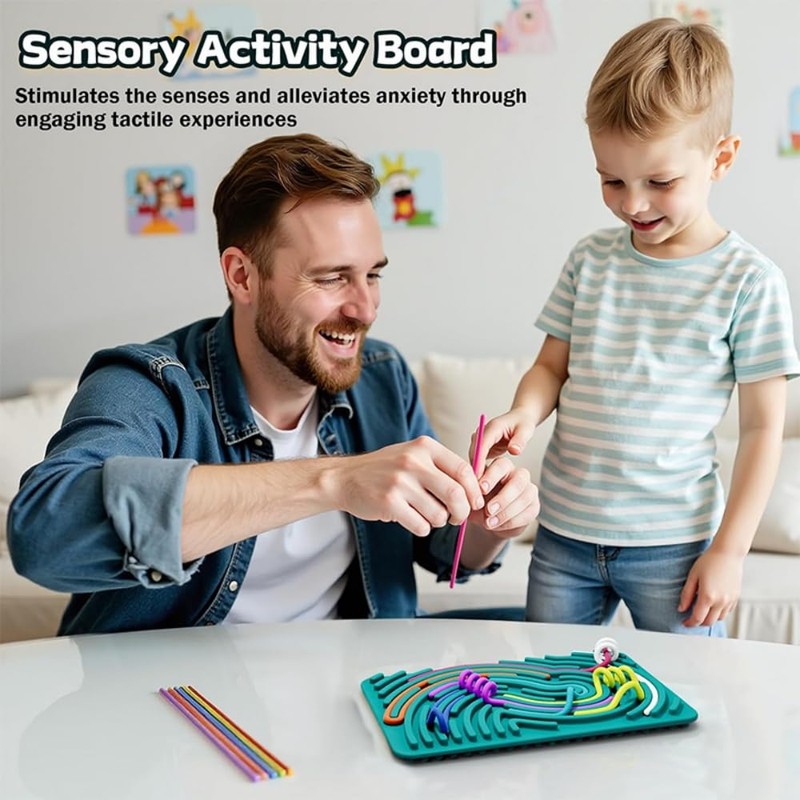 - The Silent Fidget Toy is Made of Safe Silicon Resin with Complex Silicone Both Sides of the Silicone Plate and 11 Bright Strings. Sensory Board is Also Equipped with a Convenient Portable Bag, Which Can be Played Anytime, Anywhere and Can be Shared with Friends.