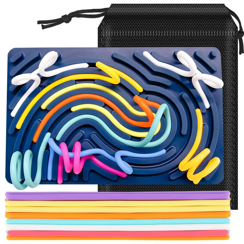 Sensory Activity Board, Silicone Sensory Fidget Toy for Kids, ADHD & Autism, Calming for Anxiety, Silent, No Mess, Sensory Toys for Kids 3+ & Adults with 20 Strings