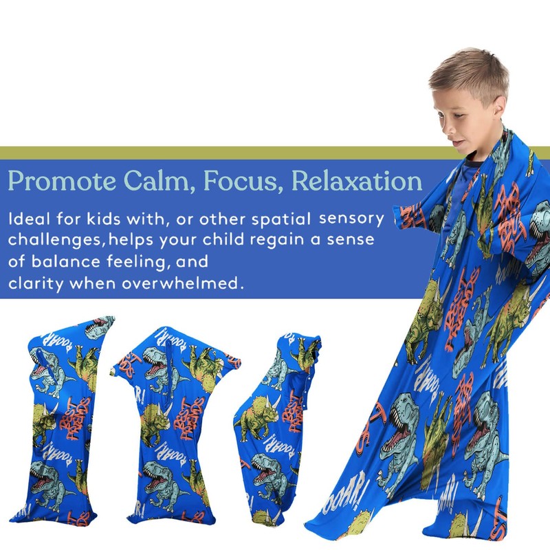 Sensory Sock Full Body Sock Provides Deep Pressure Input Sensory Toys for Autistic Children, Small (40''LX27''W), Blue Dinosaur