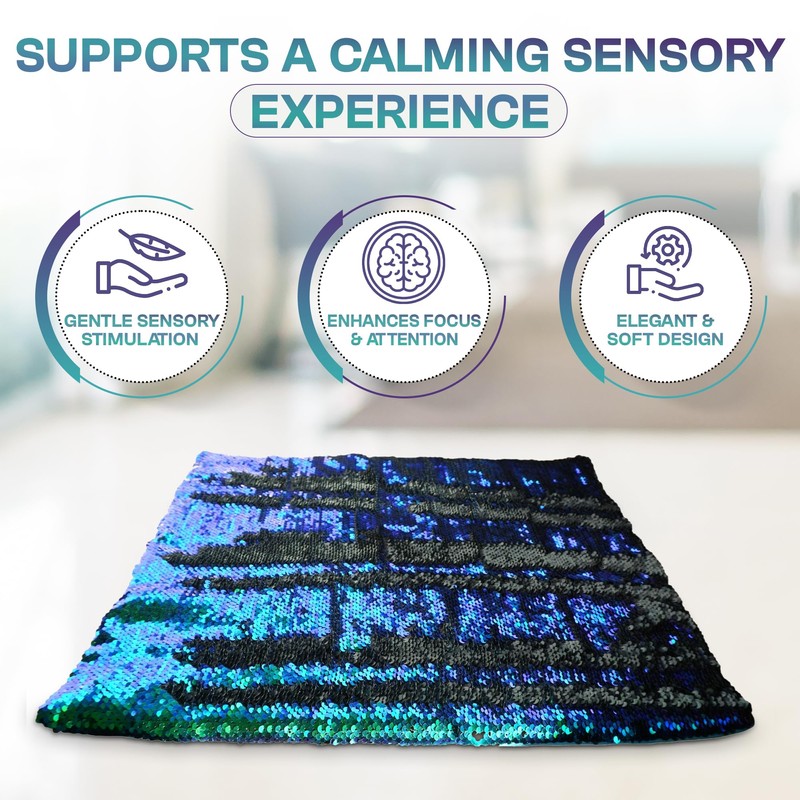 - Dynamic Sensory Interaction: The lap pad comes with a captivating flip sequin fabric, offering an interactive and tactile experience that engages the senses for enhanced sensory stimulation and enjoyment.