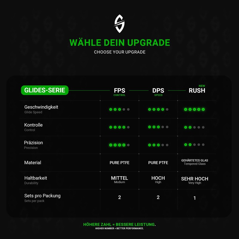 - Pack of 2: with each delivery you will receive 2 DPS Glides sets, suitable for the selected gaming mouse. So you always have a replacement ready and are always on the safe side.