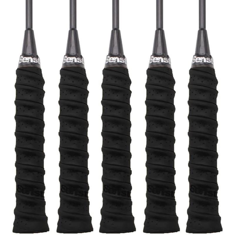 Senston 5 Pack PU Racquet Grip Tennis/Badminton/Squash Anti Slip Perforated Super Absorbent Overgrip, Pack Of 5 (Black)