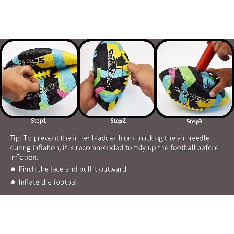 ★Packing Includes★ 1x High School Football Official Size 9, 1x pump, 1 x needle. (The ball deflated to ensure the safety of transportation, you can inflate it after you received)