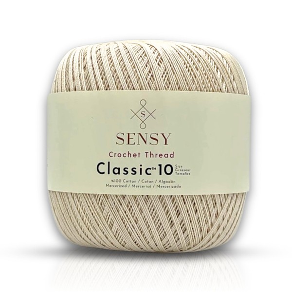 Sensy Crochet Thread Classic Size 10, 100% Mercerized Giza Cotton, 617 Yards, Gauge 0 Lace (Ecru)