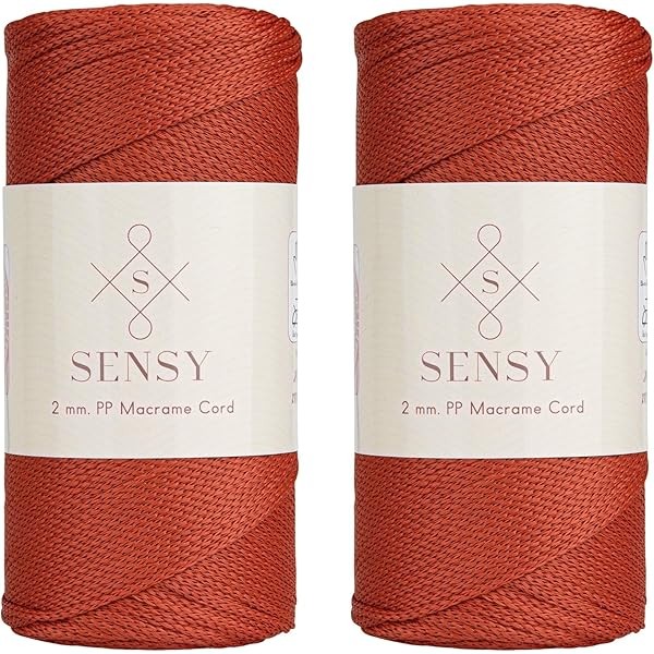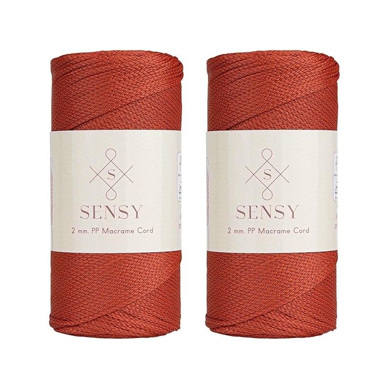 Sensy Premium 2 Pack of 2mm 251 Yards Polyester Rope 100% Polypropylene Cord Macrame Cord 2mm Crochet Bag Cord Macrame Rope Crochet Thread Gift for Knitter (Brick)