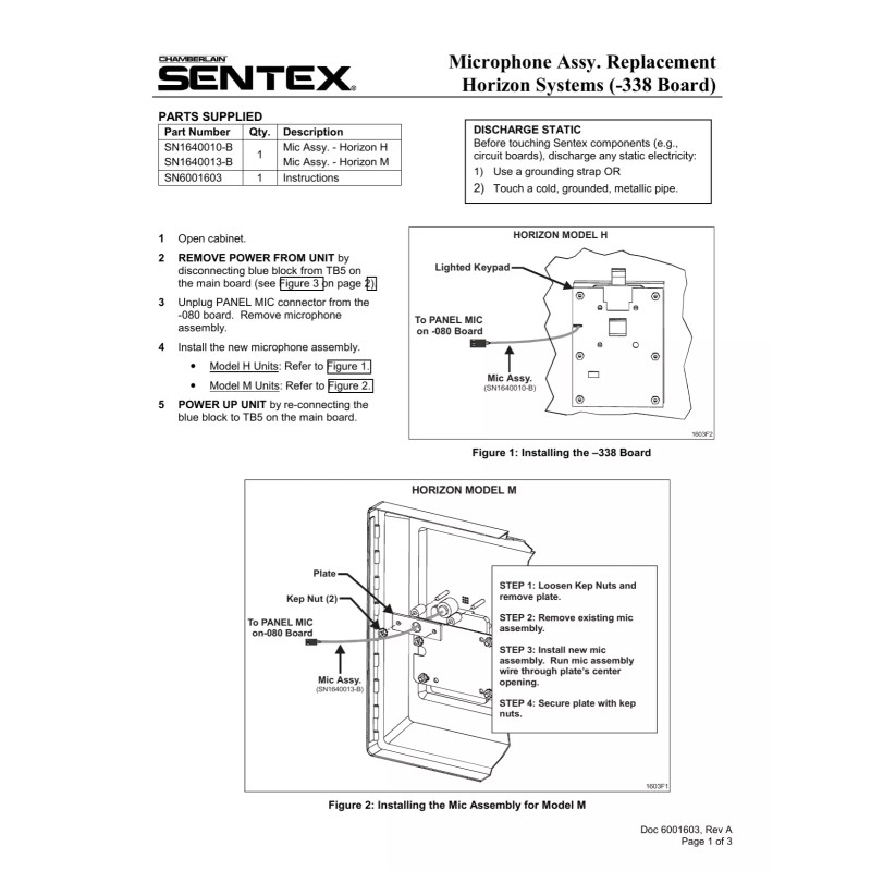 Sentex Horizon 3-Wire Intercom Gate Security Microphone -080 Board SN1640010-B