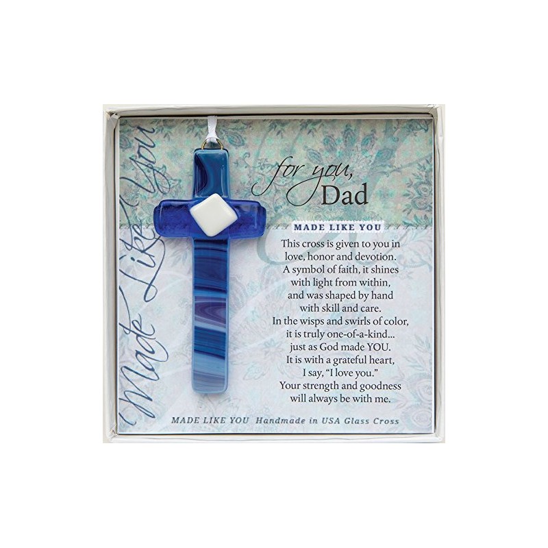 - Handcrafted in USA, beautiful blue glass cross with Made Like You sentiment makes perfect gift for dad from kids