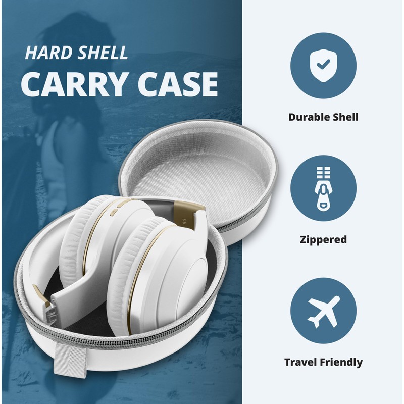 SENTRY OSH Over Ear Bluetooth Wireless Headphones, Active Noise Canceling -20dB Reduction, 22 Hour Battery Life, Control Buttons, Built in Microphone, USB C Charging and Carrying Case Included (White)