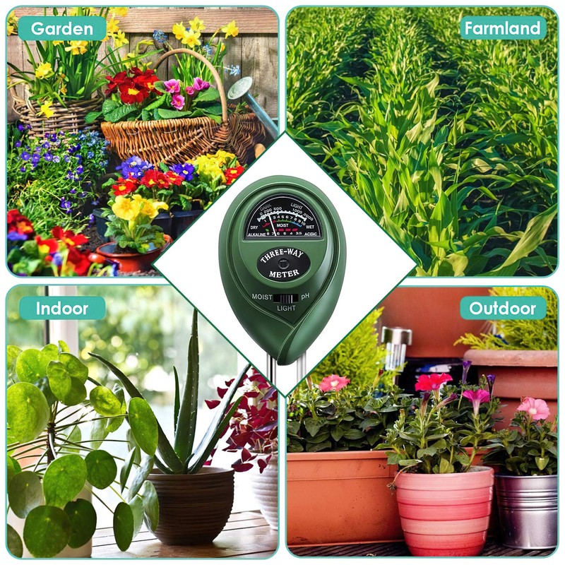 .With integrated multi-function highly sensitive sensors. The Senua 3-in-1 soil tester is able to test soil moisture, pH values and sunlight exposure levels of your plants. It can be used on plants in the garden, lawn, farm, indoors, outdoors. It's lightweight and portable, easy to be carried for outdoor use. It's the ideal plants care kit!