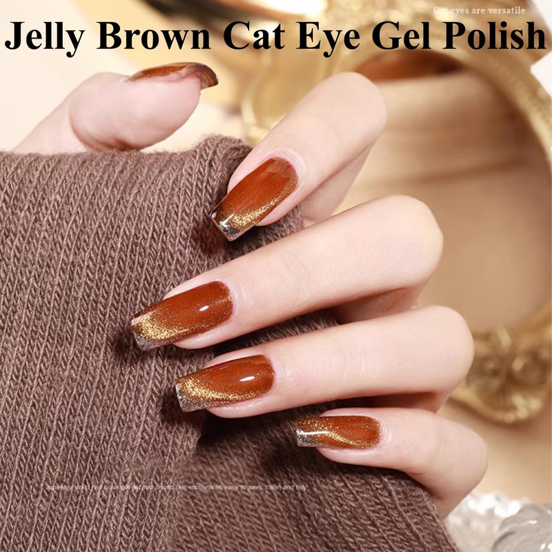 Senvenski Gelee Glas Cat Eye Gel Nagellack mit Magnet 15ML Magnetisch 3D Galaxie Holographisch Reflektierend Glitzernd Durchsichtig Farbe Gellack Salon Home DIY (Bernstein, 0.5fl oz)