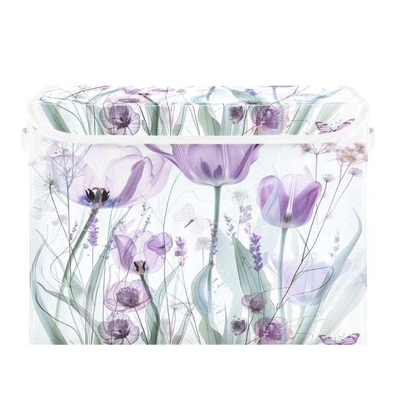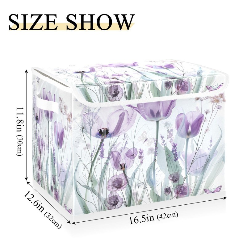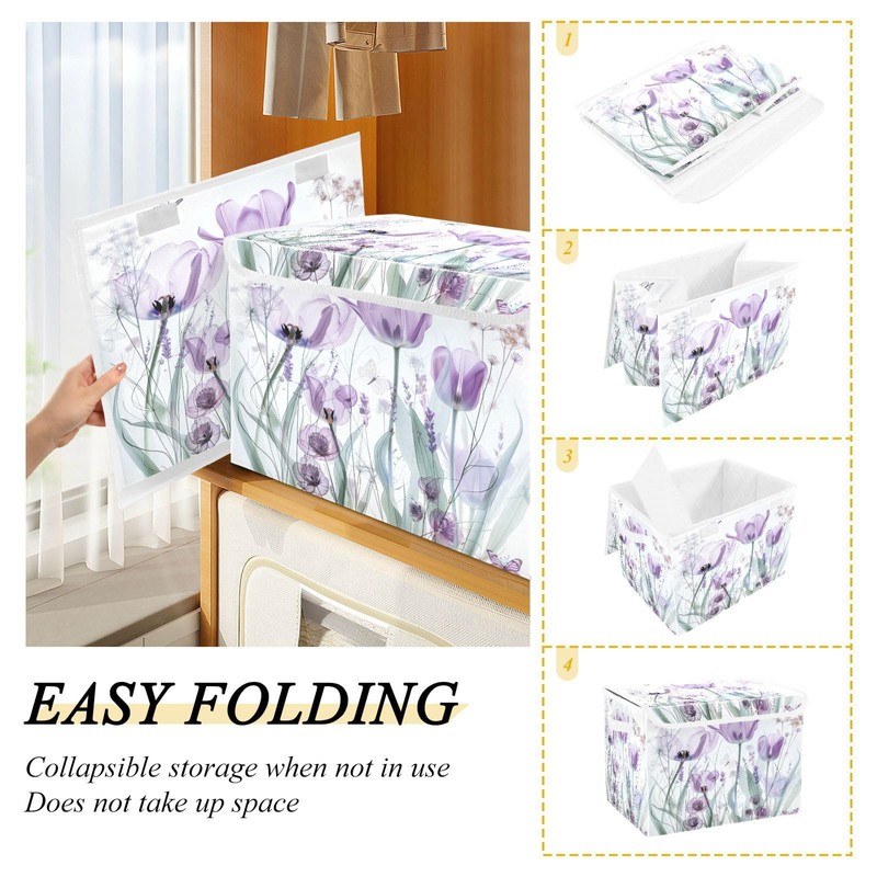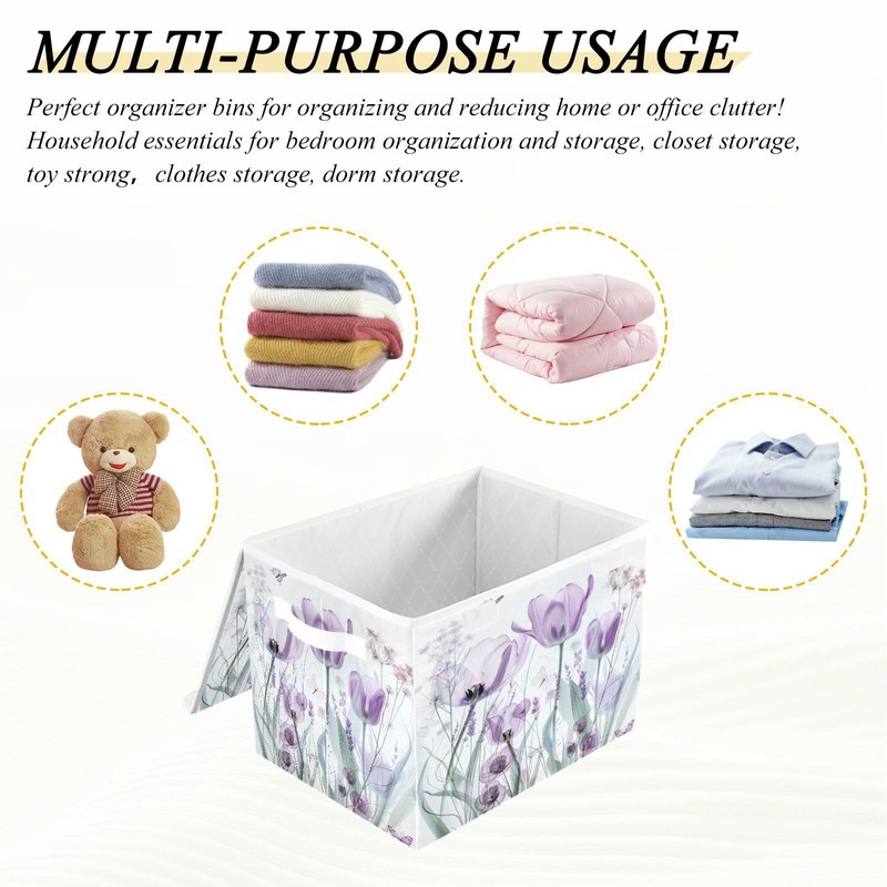 senya Baskets Collapsible Storage Bins with Lids, Purple Tulips Flowers Pastel Storage Boxes Clothes Baskets for Organizing, B06D22020