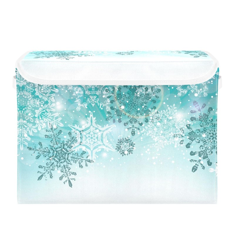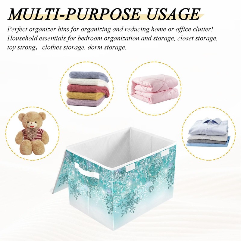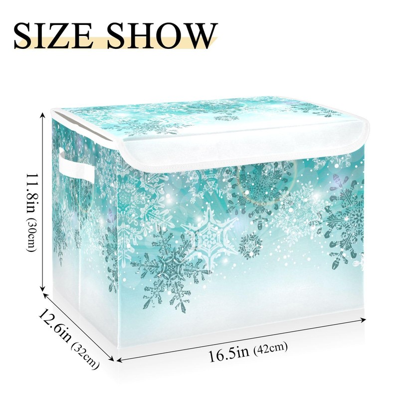 senya Christmas Storage Baskets Collapsible Storage Bins with Lids, Silver Winter Teal Turquoise Snowflakes Christmas Storage Boxes Clothes Baskets for Organizing