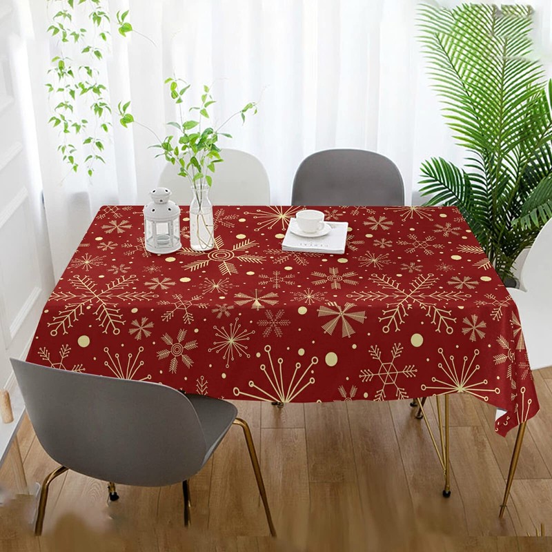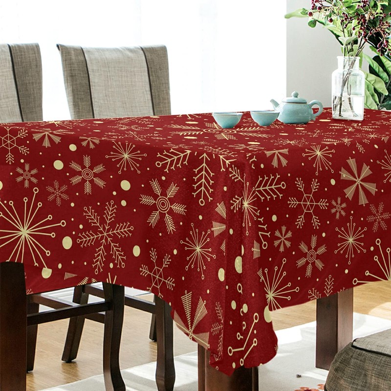 senya Christmas Tablecloth Christmas Snowflakes On Dark Red Square Tablecloth Rectangle Tablecloth Stain Resistant Washable Fabric Table Cloth for Dining Party and Outdoor Use