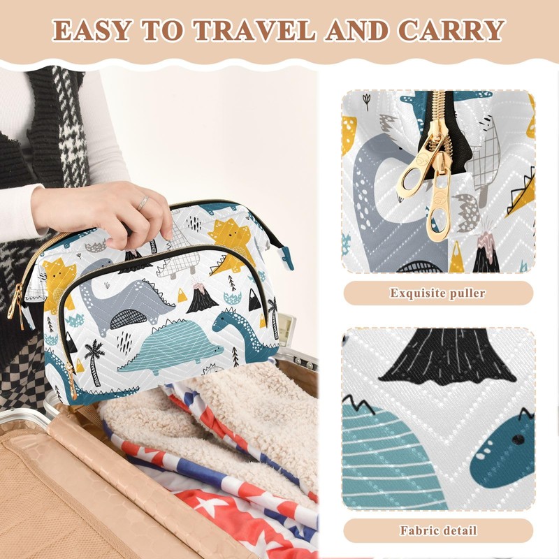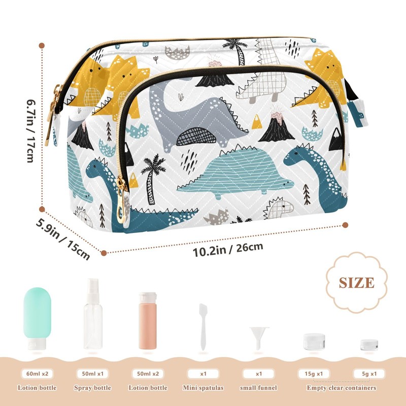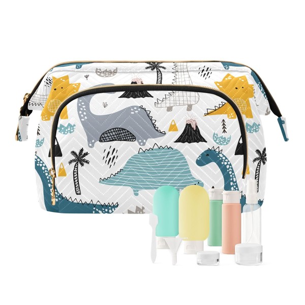 senya Travel Makeup Bag Cosmetic Bag Wide-open Pouch Toiletry bag Make Up Organizer Case with bottles kit for Women (Hand Drawn Dinosaur)