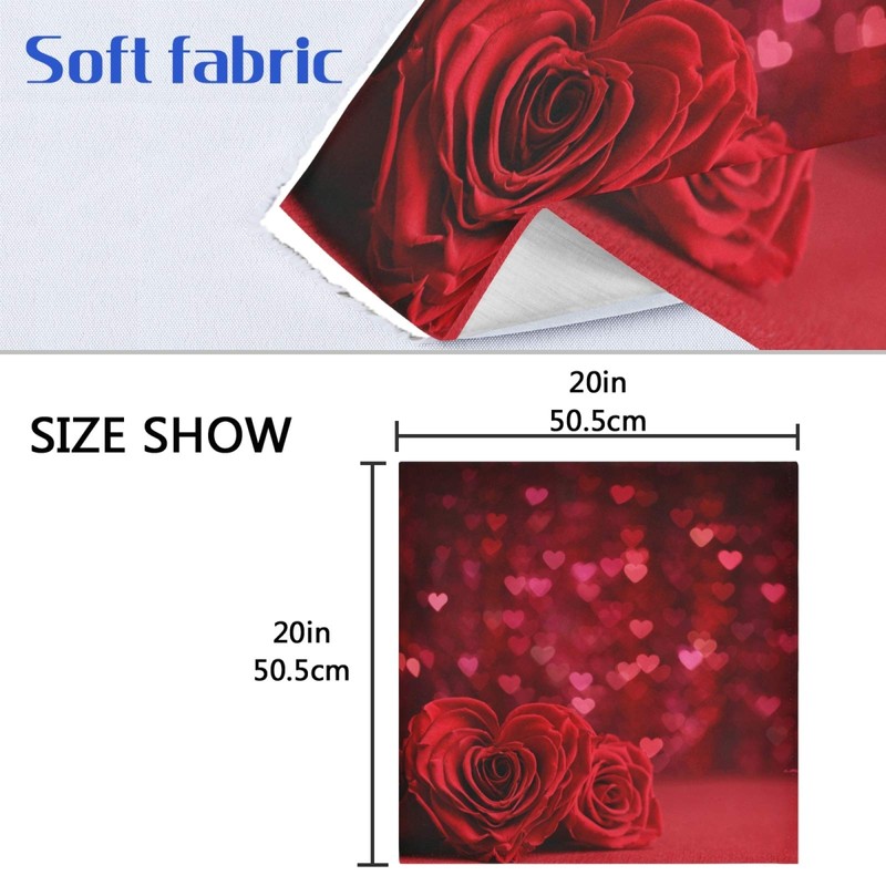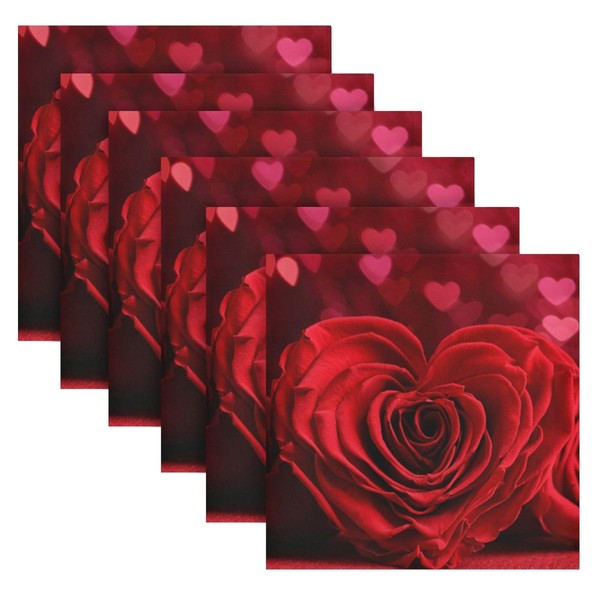 senya Valentine's Day Cloth Napkins Set of 6, Roses Bouquet and Hearts Square Premium Polyester Table Linen Napkin for Dinner Parties