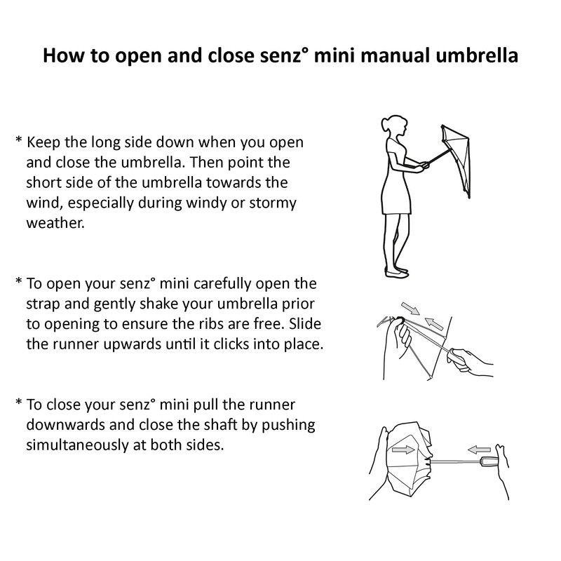 - Materials: pongee (polyester) with UPF50+ UV coating canopy, aluminium, steel, strengthened fiberglass ribs, steel shaft, polypropylene runner, nylon notch, solid plastic grip, and flat woven polyester wrist cord.