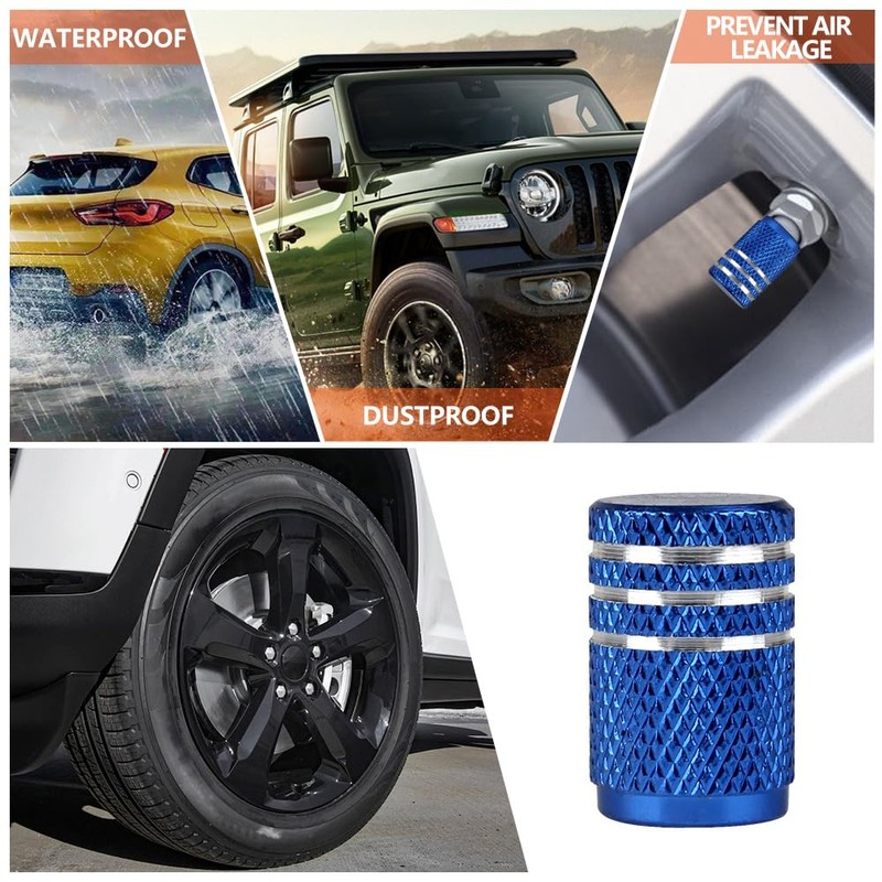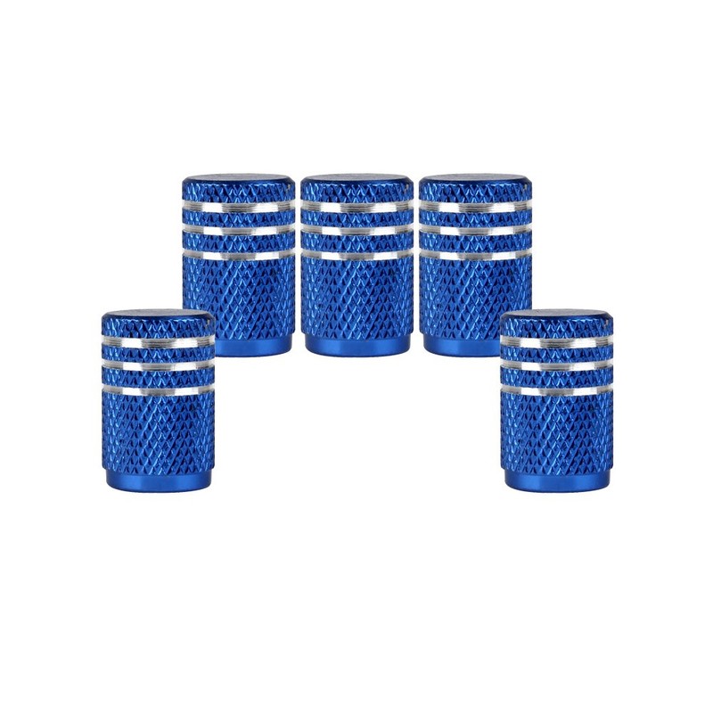 SENZEAL 5x Silver Around Car Valve Caps Aluminum Motorbike Wheel Dust Caps Blue