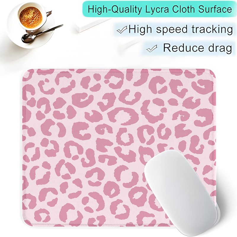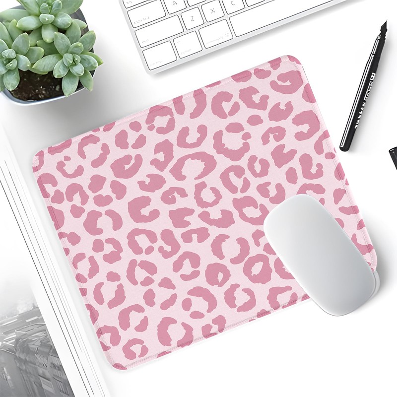 Seorsok Square Aesthetic Pink Leopard Mouse Mat Premium Textured Mouse Pads for Office Laptop,Washable Square Mousepads with Extended Stitched Edges Non Slip Rubber Base