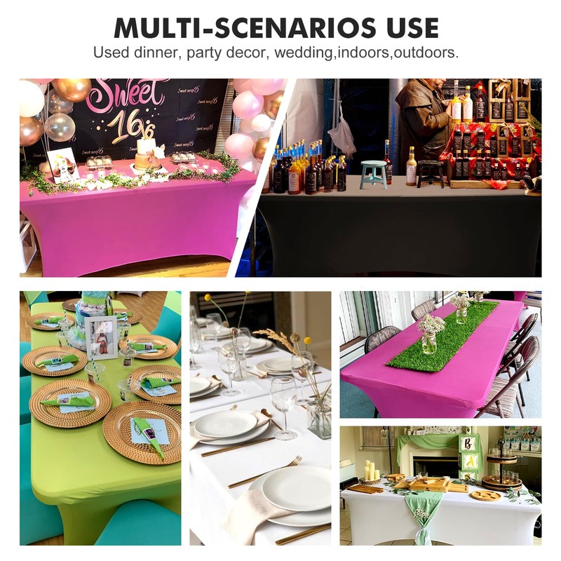- 【Occasions】Our table cover can be used on the dessert table, display table, buffet table, DJ table and etc. It works well. When used outdoors, this tablecloth won't slip around or billow with wind. Very perfect for Christmas, Thanksgiving, weddings, parties, vendors, banquet, tradeshow, hotel receptions, craft fair displays, jewelry shows display, exhibitions,celebrations or any special event. Even fit for lash beds and massage beds.