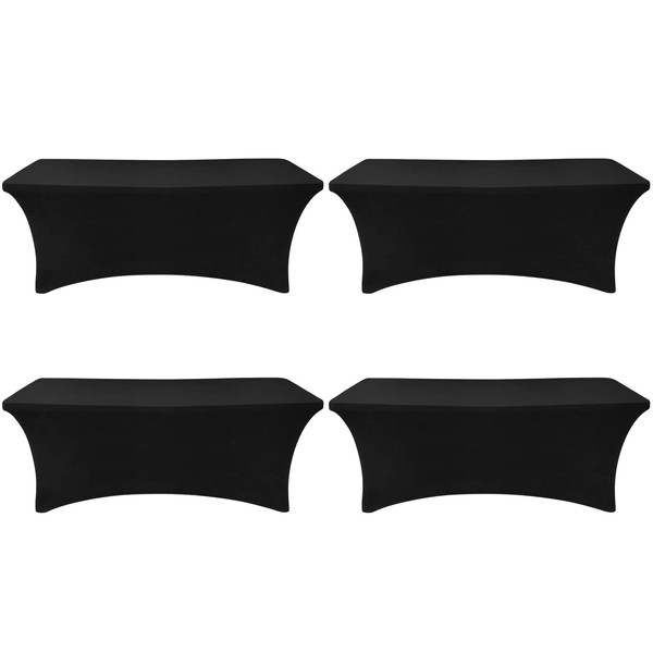 SEPARO 4 Pack 6 Ft Black Spandex Table Cover Fitted Rectangular Tablecloth Stretchable Fabric Lycra Table Cloth 6 ft Wrinkle-Free for Party Tradeshows Banquet Weddings Cocktail