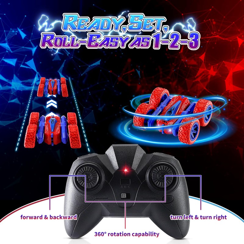 - 360° Double-Sided Stunt RC Car: this RC car isn't just a toy—it's a double-sided driving machine designed for heart-racing 360° spins. Watch your child become the neighborhood sensation as they master every twist and turn, turning playtime into a thrilling adventure!