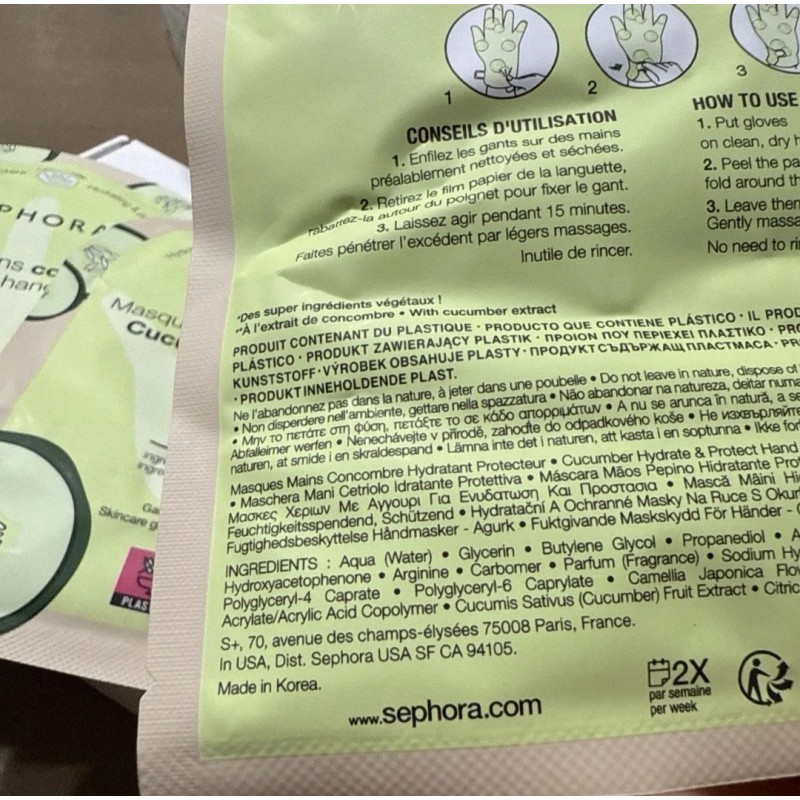 3 NEW SEPHORA collection hand mask CUCUMBER hydrating & protecting.
