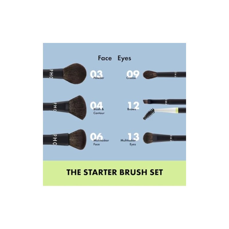 - What Else You Need to Know: The Starter Brush Set is your go-to set for seamless application of your everyday face and eye makeup products. It contains everything you need for complexion and eye-look perfection, including two ultimate multitasking brushes designed to be used with any texture to create a quick and flawless makeup look in half the time, and without needing to switch between brushes. Take them with you on the go thanks to its sleek black makeup pouch.