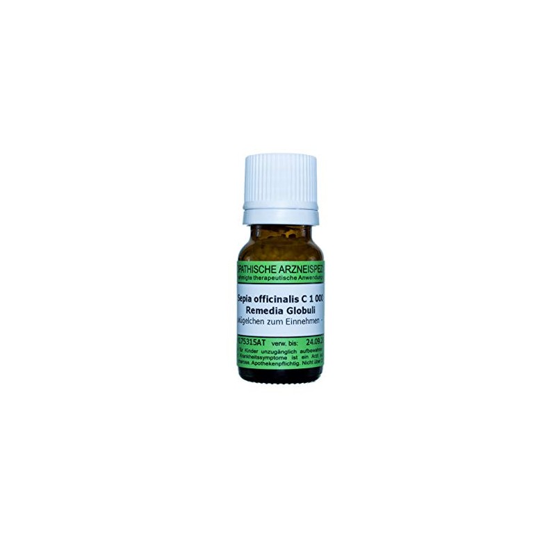 Sepia officinalis C1000 (pack size: 10g) is a registered homeopathic medicine and therefore without indication of a therapeutic indication. The globules are size 3 sucrose litters that are lactose and gluten free. This medicine is produced and controlled according to homeopathic and European pharmacopoeia in Austria in GMP quality by REMEDIA Homeopathie GmbH. According to the principles of homeopathy, each treatment is carried out with a medicine individually tailored to the patient and his respective clinical picture. Medicines can cause side effects in addition to effects. For risks and side effects, please consult your doctor or pharmacist.