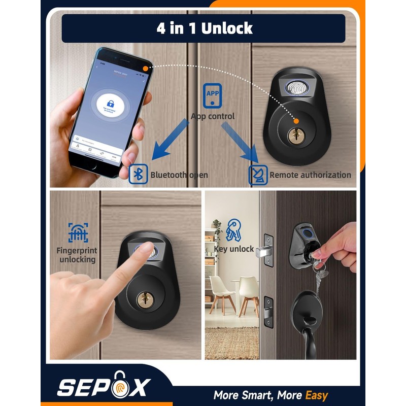 SEPOX® Keyless Smart Lock for Front Door 2 PCS, Fingerprint Entry Door Lock with APP Control,Biometric&Bluetooth Digital Deadbolt Lock,4Months Battery Included, Auto-Lock,Emergency Power&Key Available