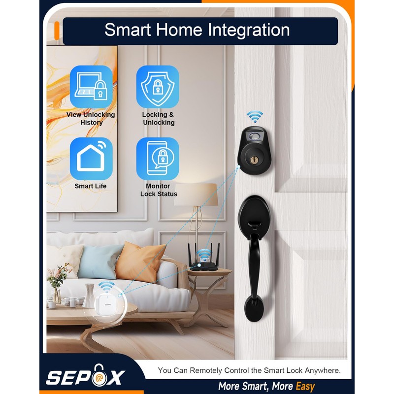 SEPOX® Keyless Smart Lock for Front Door 2 PCS, Fingerprint Entry Door Lock w...