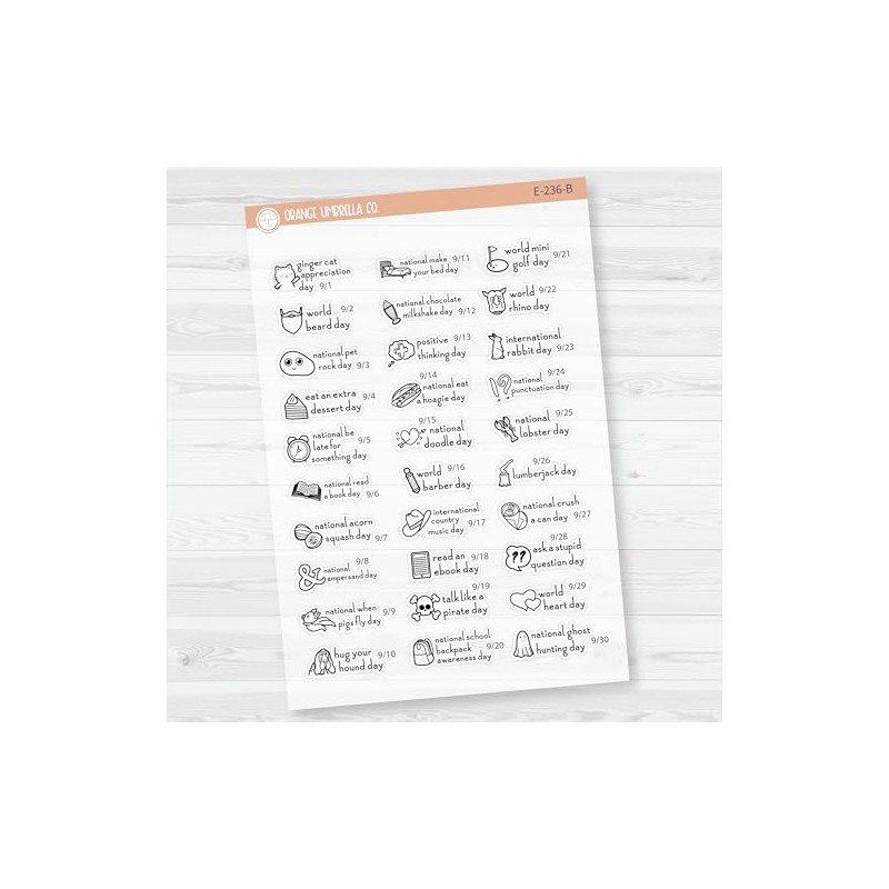 September Wacky Holidays Mini Script Planner Stickers | F16 Clear Matte | E-236-BCM